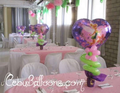 Pour un gâteau, optez pour un gâteau de sucre à étage mauve avec des fleurs roses, et une figurine fée clochette au-dessus serai approprié.